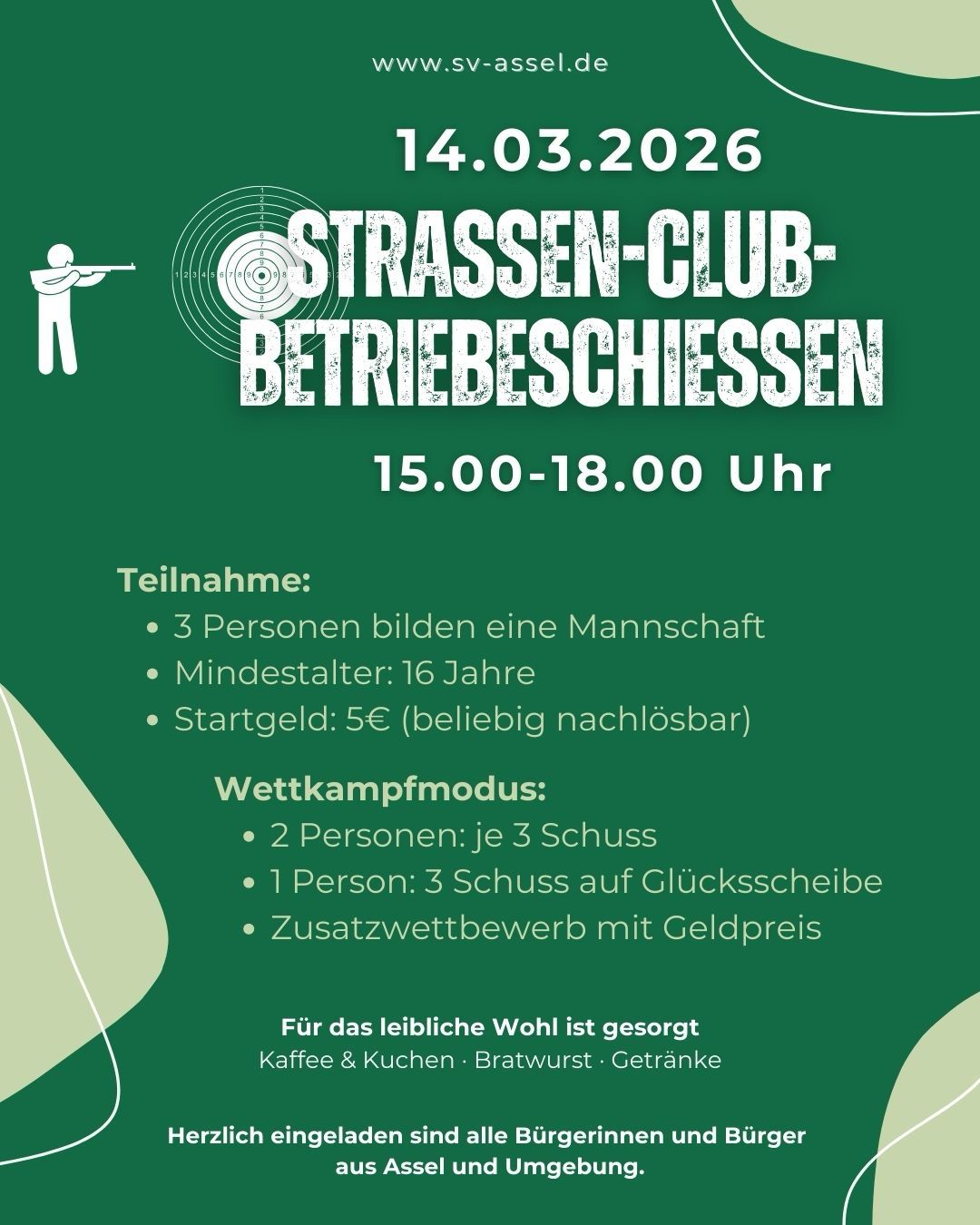 Das Straßen-, Club-, Betriebeschießen startet am 14.03.